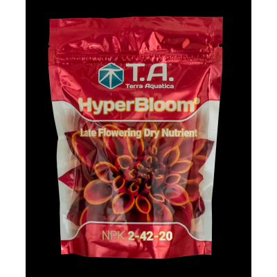 Ripening Fertilizing Powder Our ripening solution, HyperBloom®, tested and approved for years in the English-speaking world, is finally available to the European market! HyperBloom® is a fertilizer enriched with phosphorus, potassium and sulfur, which accelerates the maturation process of your plants and promotes flowering and fruiting. Thanks to the variety of its sources of active ingredients, it is easily assimilated and adapts to all types and environments of culture, hydroponics and soil. An even more concentrated formula, for more savings !